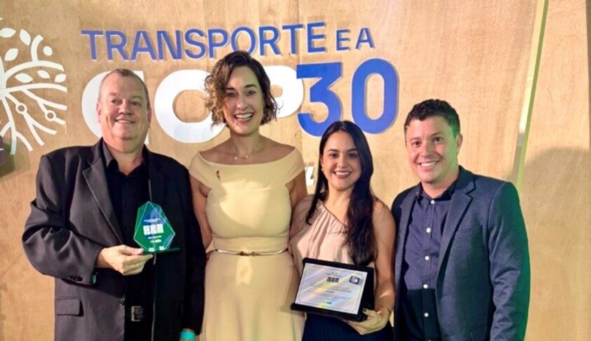 Em Belém (da esq. p/ dir.): Edenilson Sanches, gerente de Sustentabilidade da Ferroport, Larissa Amorim, diretora do MPor, Amanda Souza e Renato Aguiar, analista e coordenador de Meio Ambiente da